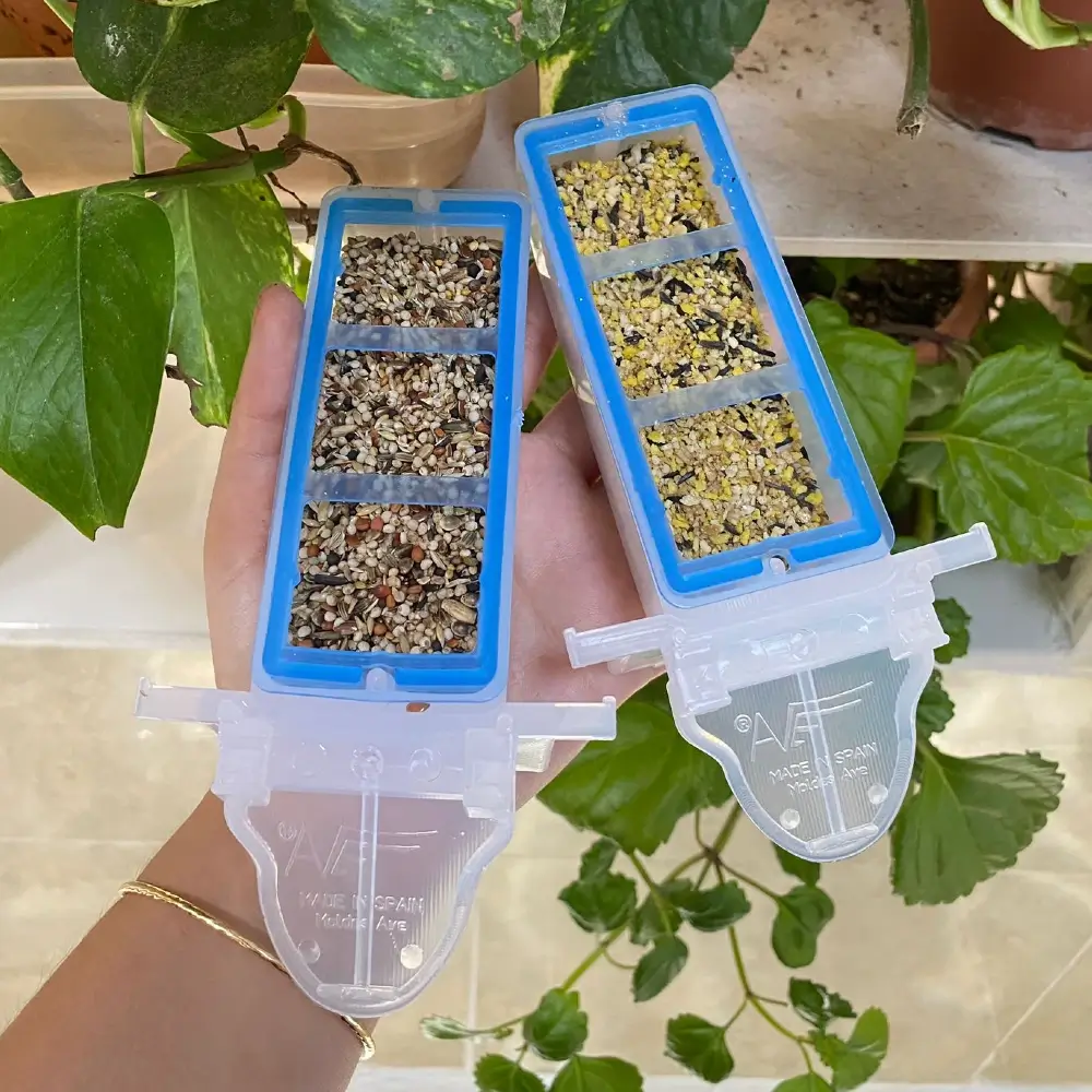 Η εσωτερική ταΐστρα Moldes Ave Maya σχεδιάστηκε για να προσαρμόζεται εύκολα σε όλους τους τύπους κλουβιών, συμπεριλαμβανομένων εκείνων με πορτάκι τύπου ελατηρίου ή γκιλοτίνας. Κατασκευασμένη από υψηλής αντοχής πλαστικό, είναι μη τοξική και απόλυτα ασφαλής για καθημερινή χρήση.